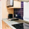 Cuenta con dos dormitorios, una habitación principal con una cama de matrimonio y otra habitación con una litera. El salón, muy espacioso y acogedor, cuenta con aire acondicionado y televisor. El cuarto de baño y la cocina están completamente equipados con todo lo necesario.