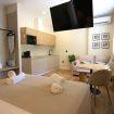 Estudio amplio y luminoso, totalmente reformado, con cama de matrimonio y sofá cama. Está situado frente a la Portada de la Feria, en Los Remedios, un barrio lleno de vida, comercios y restaurantes típicos sevillanos.