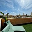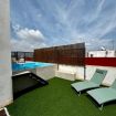 Dispone de una terraza en la parte trasera y una bonita piscina comunitaria en la terraza del edificio.